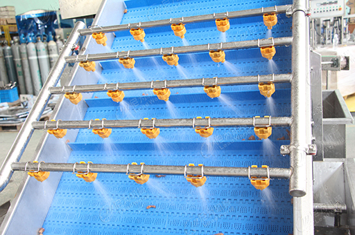 鼓泡清洗機基礎(chǔ)款適用于外形不復(fù)雜,污垢單一(如含泥沙為主)的產(chǎn)品。它由鼓泡發(fā)生裝置和噴淋裝置組成,物料投入箱體后在氣泡機和水的結(jié)合作用下做翻滾狀態(tài),并隨網(wǎng)帶不斷向前推進,在出水面處設(shè)有噴淋頭,高壓沖洗。