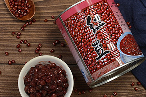 將調制好的糖水經液體灌裝機灌在紅豆罐中。