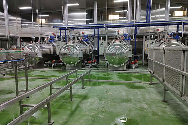 殺菌:在制作午餐肉罐頭時(shí),使用殺菌釜進(jìn)行高溫殺菌是確保產(chǎn)品安全性和延長(zhǎng)保質(zhì)期的重要步驟。高溫殺菌可以有效地殺滅細(xì)菌、病毒和其他微生物,防止罐頭中的食品腐敗和變質(zhì)。殺菌過(guò)程對(duì)于確保產(chǎn)品的保質(zhì)期至關(guān)重要。