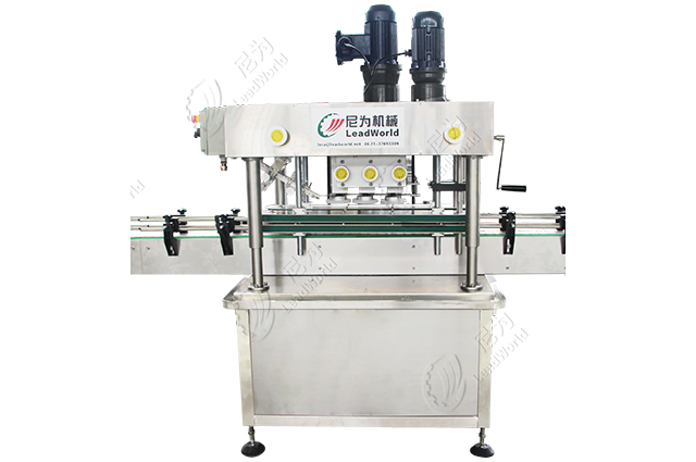 灌裝完成后就是旋蓋封口,尼為自動(dòng)上蓋旋蓋機(jī)采用直線式進(jìn)瓶、自動(dòng)落蓋的方法,可連續(xù)上蓋、旋蓋,提高了上蓋速度,適合大產(chǎn)量生產(chǎn),機(jī)器調(diào)節(jié)也很方便。
